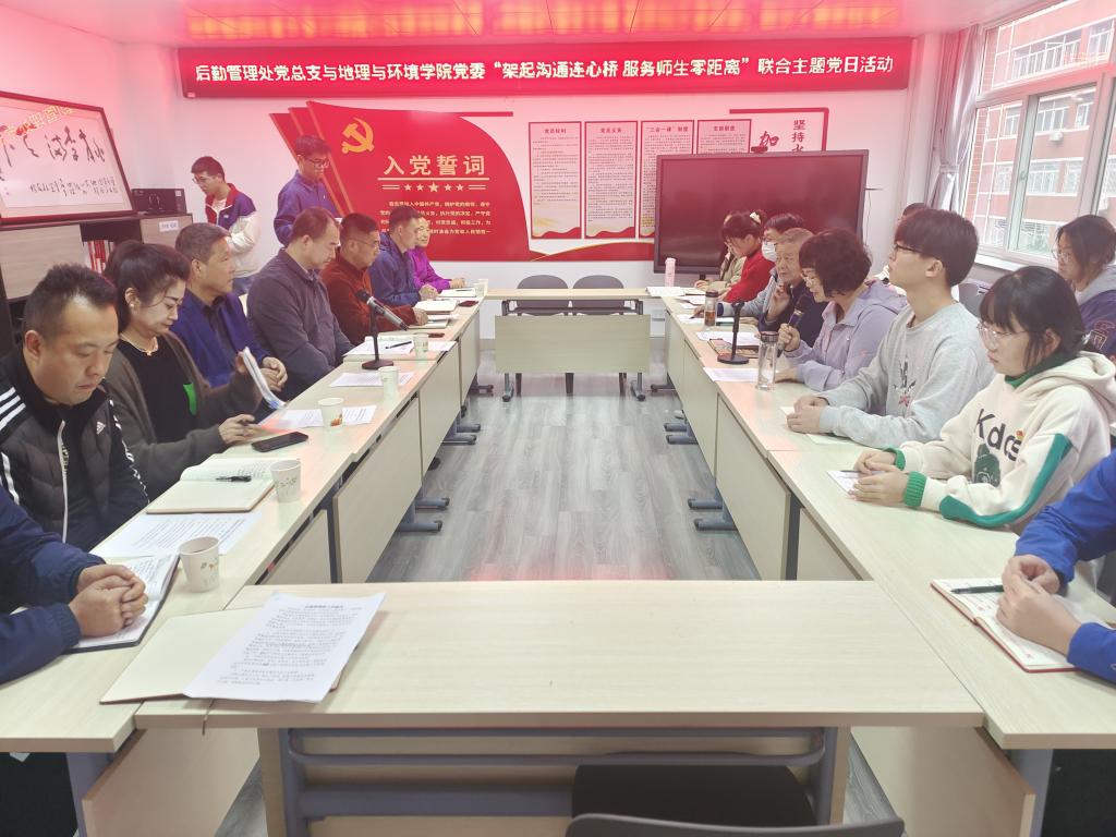 10月18日下午,后勤管理处(后勤服务集团)党总支与公司党委联合开展了“架起沟通连心桥,服务师生零距离”主题党日活动,活动在高新校区明理楼202室举行。会议由公司党委副书记、副经理梁文博主持。